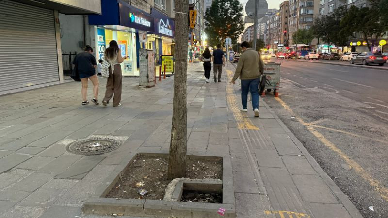 İkinci görüntü Cemal Gürsel Caddesi, Dikimevi otobüs durağının çevresindeki ağaçtan geliyor. Yetişmiş çam ağacının toprağı adeta ikiye bölünmüş ve bir kısmı sigara küllüğü görevi görüyor. Başkent Ankaralıların ağacın kökünü küllük olarak kullanması görenleri dehşete düşürüyor. Topraktaki diğer çöpler de dikkat çeken başka bir husus olarak gözler önüne seriliyor.