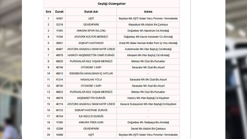 Ankara Havaş otobüsleri, Esenboğa Havalimanından hareket ederek Ankara şehir merkezindeki önemli duraklarda yolcu alımı ve bırakımı yapıyor. Yolcular, gün boyunca düzenli aralıklarla seferlerden faydalanabiliyor. Özellikle sabah erken saatlerden gece geç saatlere kadar yapılan seferler, hem iş seyahati yapanlara hem de uçuş saatlerine yetişmek isteyen yolculara büyük kolaylık sağlıyor.