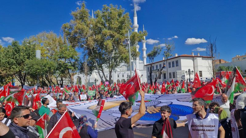 Ankara Filistin Dayanışma Platformu (ANFİDAP) öncülüğünde gerçekleştirilen “Gazze Kararlılık Yürüyüşü”, Melike Hatun Camii önünden başlayarak 15 Temmuz Kızılay Milli İrade Meydanı’nda son buldu.