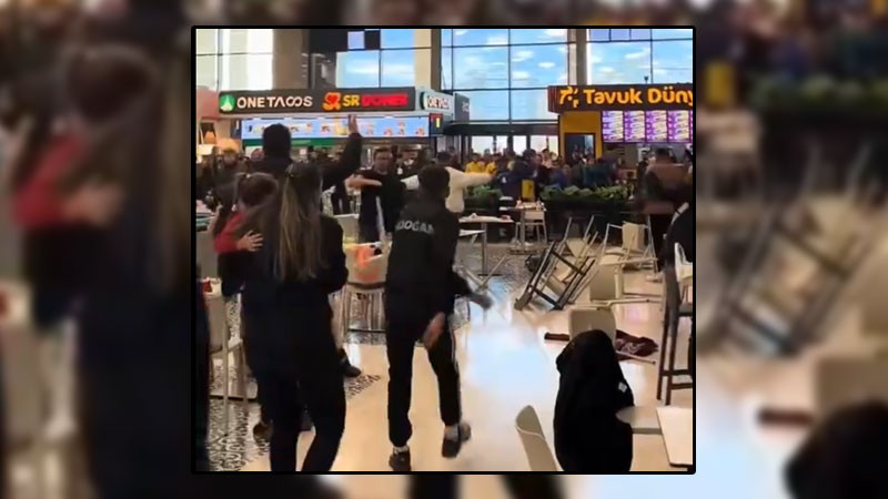 Eryaman Stadyumu’nun karşısında yer alan Devlet Mahallesi durağındaki Metromall AVM’nin yemek katında iki grup arasında “Ne bakıyorsun” kavgası çıktı. Sandalyelerin ve masaların havaya uçtuğu kavga, vatandaşlar arasında paniğe yol açtı.