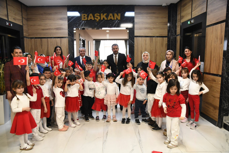 "Şehit Harun Aydın İlkokulu 2E sınıfı öğrencilerimiz Amine Erva Bayrak ve Mustafa Mehdi Erdoğan, bugün bir günlüğüne belediye başkanlığı görevini üstlenerek bizlere umut ve gurur verdiler."