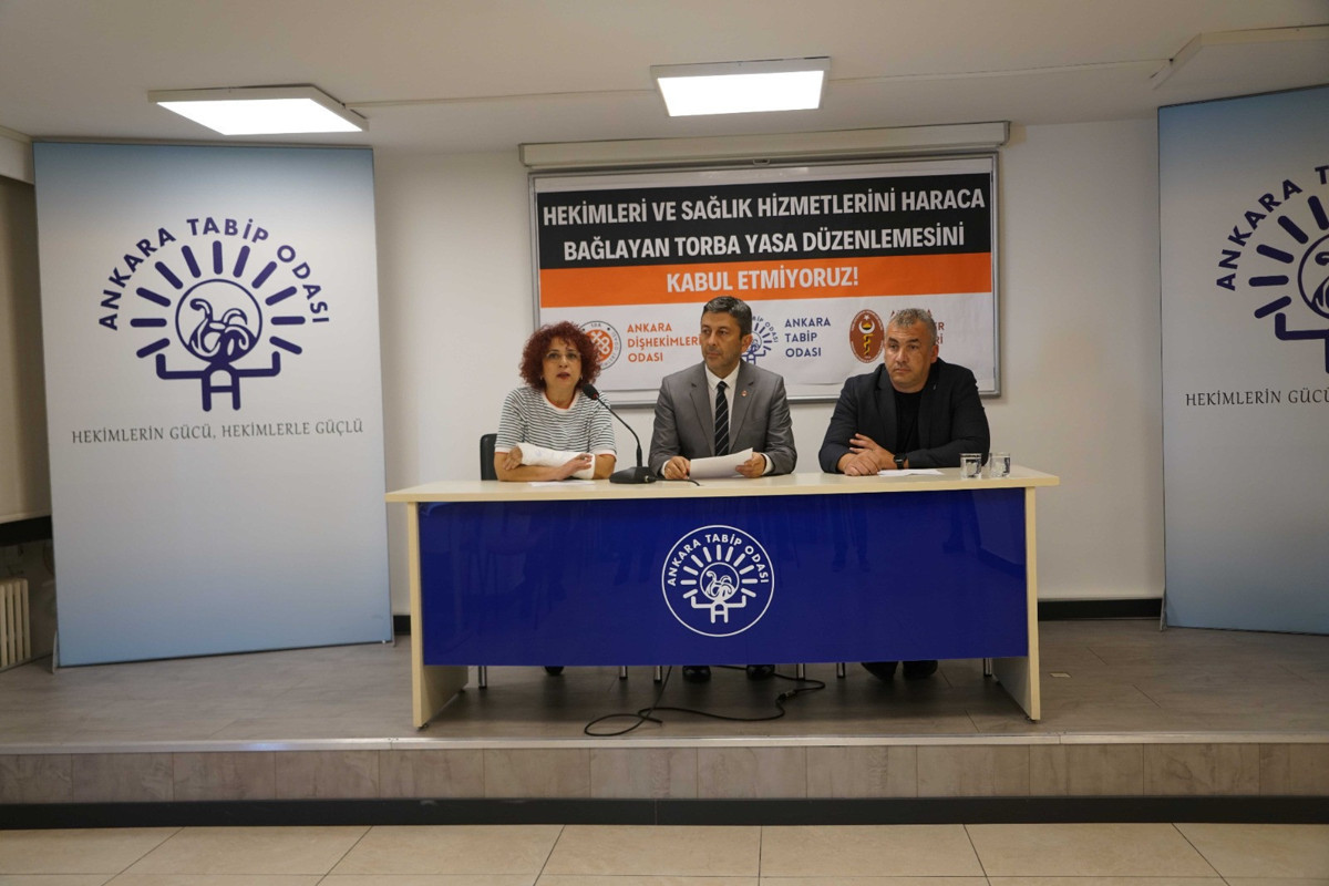 Ankara Tabip Odası, Ankara Dişhekimleri Odası ve Ankara Veteriner Hekimleri Odası, sağlık alanında yapılması planlanan torba yasa düzenlemesine karşı ortak bir basın toplantısı düzenledi.