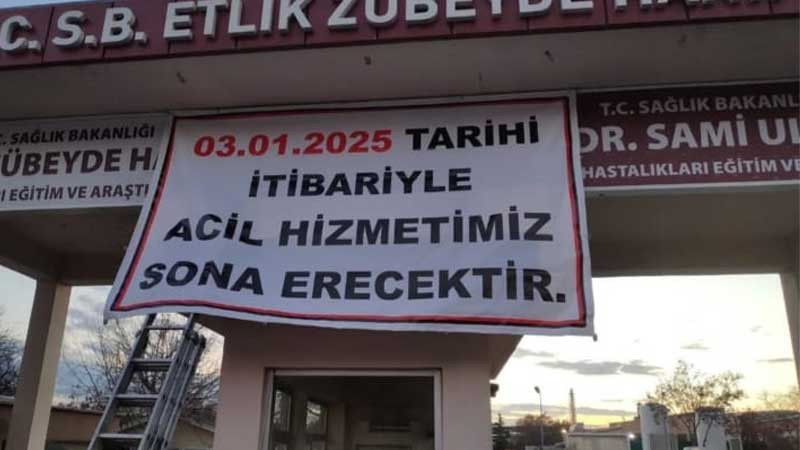 Hastanenin kapısına asılan afişle yapılan açıklamada hastanedeki acil servisin kapatıldığı ancak poliklinik hizmetinin sürdüğü aktarıldı.