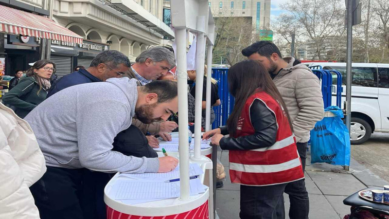 CHP'nin Cumhurbaşkanı adayı Ekrem İmamoğlu'nun serbest bırakılması için başlatılan imza kampanyasına Ankaralılar destek verdi. Açılan standlar önünde imza için sıraya girdiler.