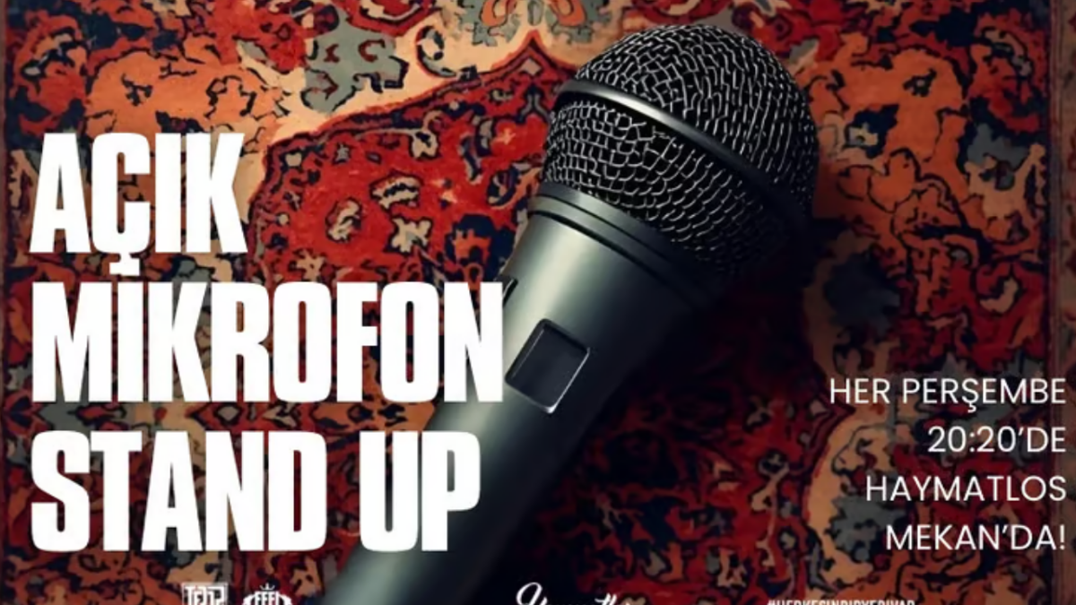 Ankara'nın popüler mekanlarından Haymatlos Mekan, 13 Kasım Perşembe akşamı kahkaha dolu bir etkinliğe ev sahipliği yapmaya hazırlanıyor. Saat 20.20’de başlayacak olan gecede, klasik "Açık Mikrofon" stand-up konsepti uygulanacak. Bu özel formatta, sahneye çıkma cesareti gösteren herkes 5 dakikalık performans sergileme şansı yakalarken, tecrübeli komedyenler de en yeni şakalarını ilk kez seyirci karşısında deneme fırsatı bulacak. Bu etkinlik, mizahın en taze ve spontane halini sevenler için kaçırılmayacak bir fırsat sunuyor.