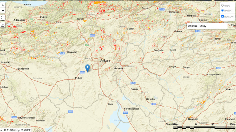 Maden Tetkik ve Arama Genel Müdürlüğü’nün (MTA) güncel Yerbilimleri Harita Görüntüleyici verilerine göre, Ankara’nın kuzey kesimleri heyelan riski açısından yüksek tehlike altında. MTA’nın heyelan katmanı aktif hale getirildiğinde, özellikle Kızılcahamam, Nallıhan, Kalecik, Çubuk, Elmadağ ve Beypazarı ilçelerinde yoğun kırmızı ve turuncu alanlar dikkat çekiyor.