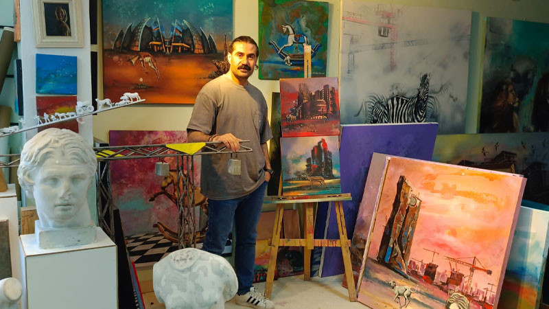 Halkın yoğun olarak kullandığı mekanlardan biri olan Kızılay Metrosu'nda da "Sanat Sokağı" adını verdiğimiz bir duvar resmi çalışması gerçekleştirdik. Bu projeyi, yeni mezun iki arkadaşım, Erdem Koç ve Mustafa Çetin ile birlikte hayata geçirdik. Türkiye'nin pek çok yerinde ve hatta Özbekistan'da bile projeler yaptım. Özbekistan devlet anıtının ve parasının üzerindeki anıtta katkım var. Mezopotamya, Sümer, Asur ve Mısır medeniyetleri de sanatla yükselmiş medeniyetlerdir. Örneğin, Mısırlılar sanatı öteki dünya için icra ederken, Yunanlılar günümüz insanı için sanat yapmışlardır. Sanat, hem bu dünya hem de öteki dünya için her zaman var olmuştur ve bir medeniyet sanatı yakaladığında gelişir.