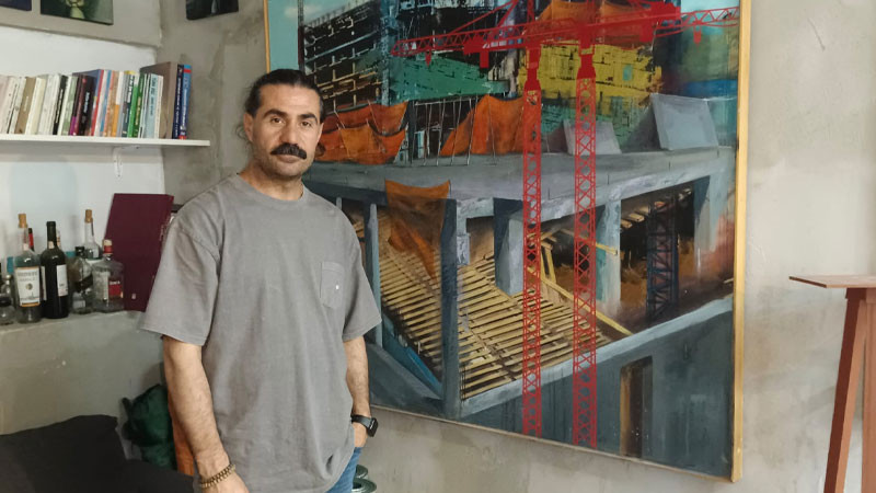 Bu birikimle üniversiteye döndüğümde, karşımdaki devasa inşaat alanını tuvalime yansıttım. 125x175 cm boyutlarındaki bu eserimle 2012 yılında Mustafa Ayaz Resim Yarışması'nda ödül aldım. Resimlerimde inşaat alanlarını, beton blokları ve vinçleri kütleler halinde işliyorum. İnşaatların sürekli yarım kalmışlığını, gerçek hayattaki inşaatların da bitirilememesine bir gönderme olarak kullanıyorum."