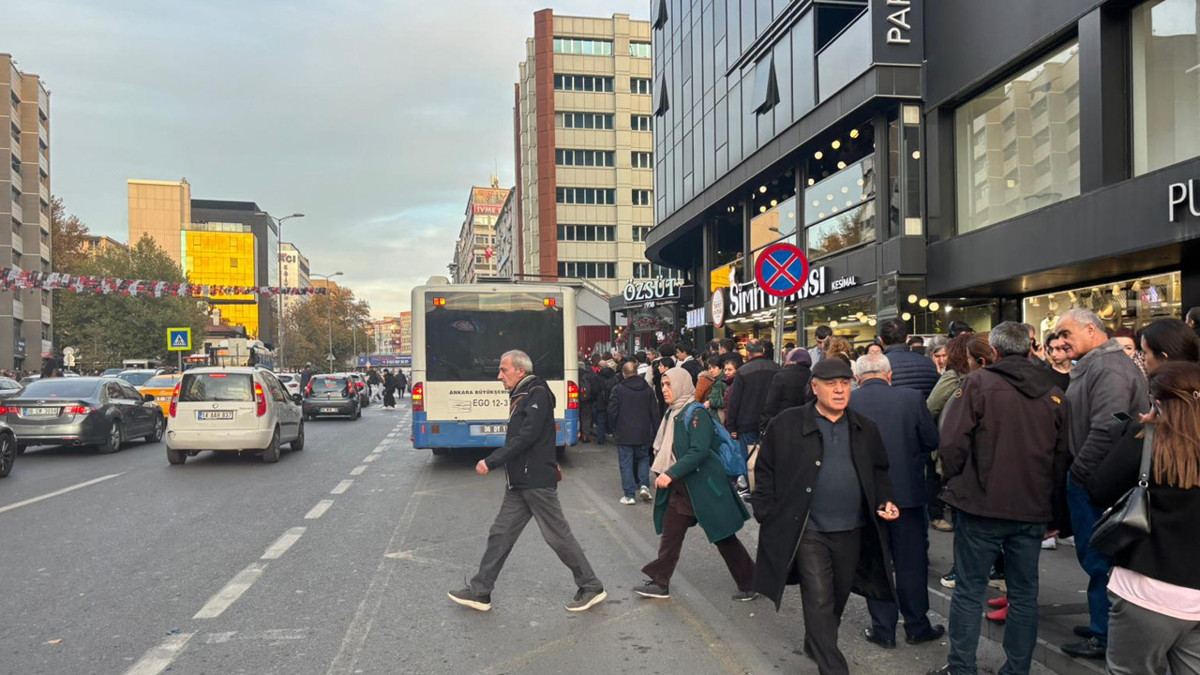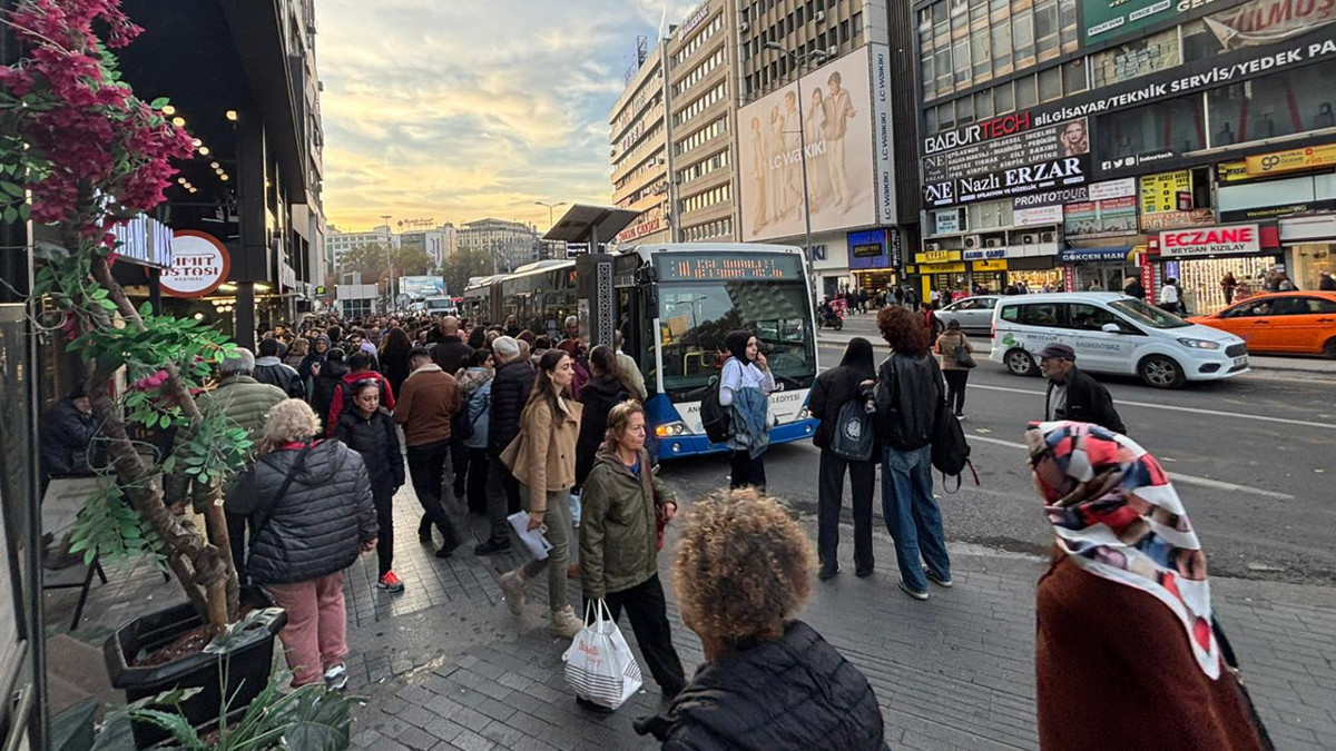 Seferlerin durmasıyla birlikte, özellikle iş çıkış saatlerinde yoğunluğun arttığı Kızılay bölgesinde kalabalık oluştu. Vatandaşların bir kısmı otobüs ve dolmuşlara yönelirken, duraklarda da bekleme sürelerinin uzadığı görüldü.