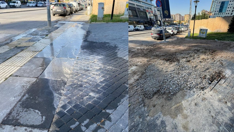 Geçtiğimiz hafta sonu da Çankaya Fakülteler Mahallesi Yazgan Sokak'ta meydana gelen su arızasına ASKİ ekipleri, yine aynı yöntemle müdahale etmişti. Kazdıkları kaldırımı tamir işlemi bittikten sonra sadece toprakla dolduran ekipler mahallelilerden tepki topladı.