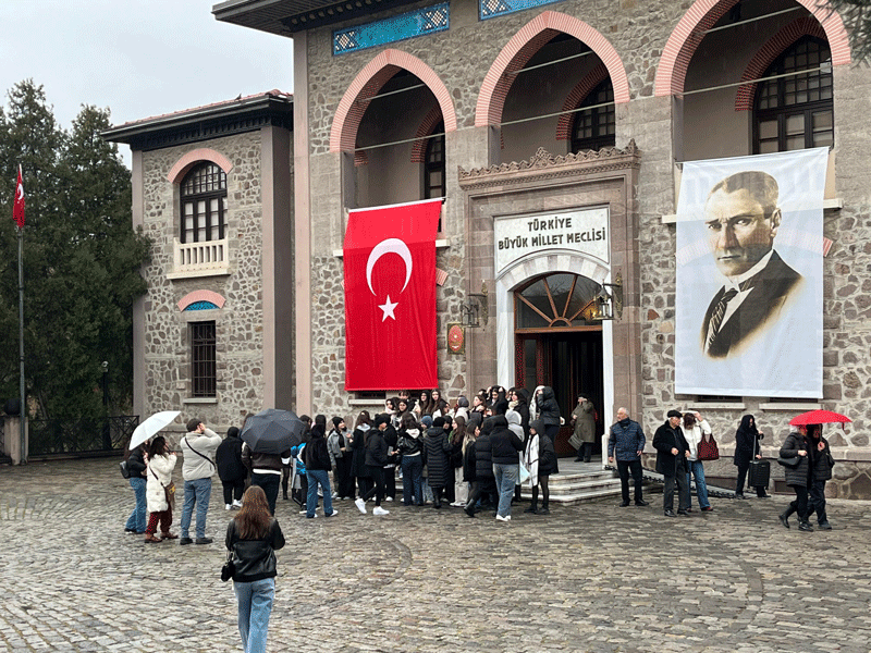 Bugün, 27 Aralık anmaları kapsamında yağmurlu hava etkili olmasına rağmen, Ankara’nın simgesel tarihi noktaları dolup taştı. 1. TBMM Binası (Kurtuluş Savaşı Müzesi), Ankara Palas ve Ulus Meydanı’ndaki tarihi mekânlar ziyaretçilerle buluştu. Her bir yapı, bağımsızlık ruhunu yaşatmaya devam ediyor.