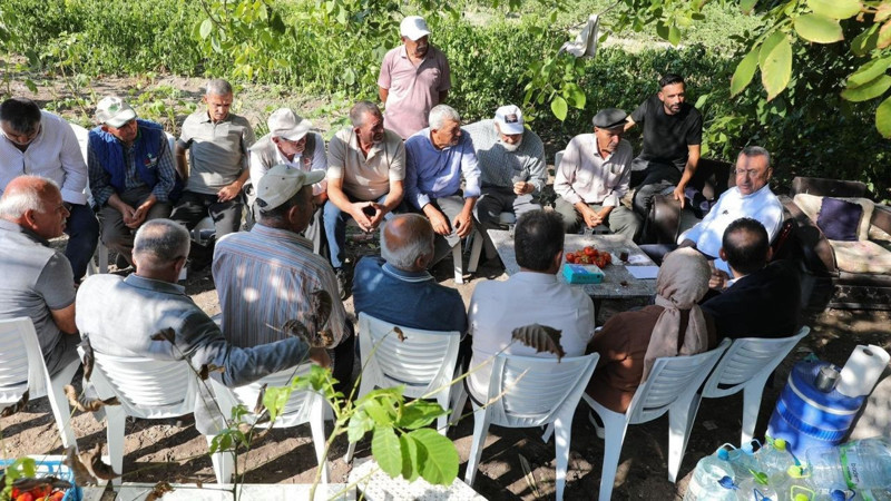 Ziyarette çiftçilere hitap eden Oktay, Ayaş’ın tarımsal ürünlerinin kalitesine dikkat çekti: