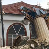 Ankara'nın Ayaş’ın ilçesinde geçtiğimiz ay meydana gelen fırtınada minaresi yıkılan camide onarım çalışmaları sürüyor