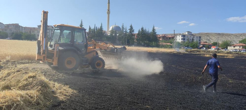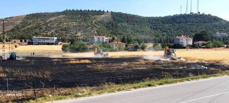 Çevredeki vatandaşların ihbarı üzerine olay yerine gelen itfaiye ekiplerinin müdahalesiyle yangın söndürülürken, yaklaşık 10 dönüm tarlası kül oldu.