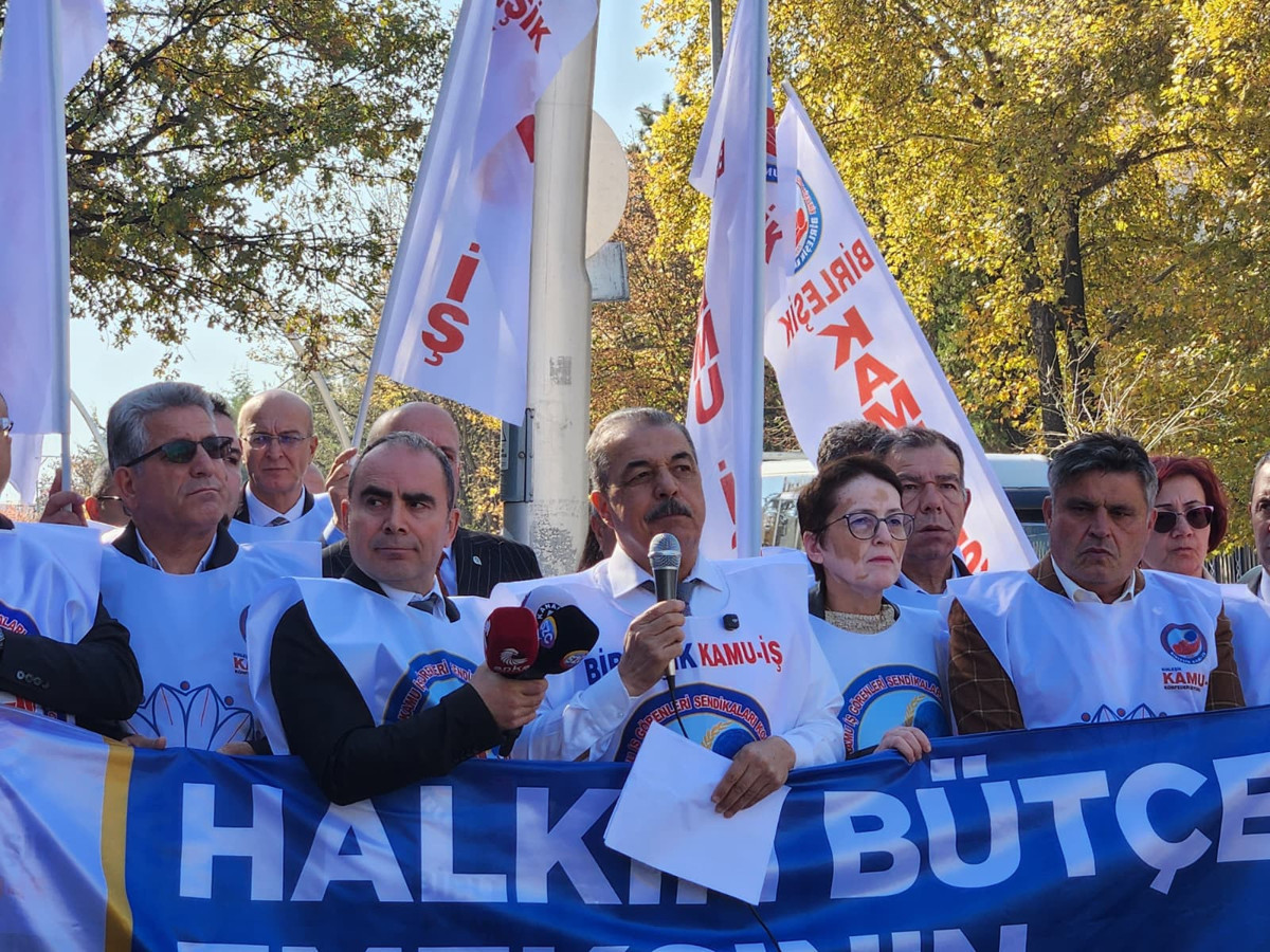 Birleşik Kamu-İş Konfederasyonu, Türkiye Büyük Millet Meclisi (TBMM) önünde, "Halkın Bütçesini Emekçinin İradesi Belirleyecek" konulu bir basın açıklaması düzenledi. Açıklamaya; Kamu-İş Konfederasyonu Genel Başkanı Orhan Yıldırım, Genel Sağlık-İŞ Genel Başkanı Dr. Derya Uğur, Eğitim-İş Sendikası Genel Başkanı Kadem Özbay, Büro-İş Sendikası Genel Başkanı Alay Hamzaçebi, Tapu Çevre Yol-İş Sendikası Genel Başkanı Güven Nazmi Demiralp ve Tarım Orman-İş Sendikası Genel Başkanı Yusuf Kurt destek verdi.