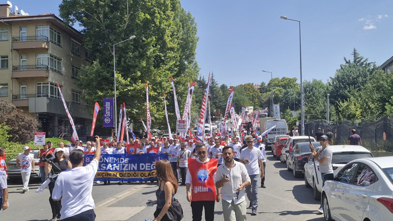 Birleşik Kamu-İş Konfederasyonu, toplu sözleşme sürecinde memur ve emekçilerin haklarını savunmak için düzenlediği yürüyüşte Ankara'dan ses yükseltti. Başkan Orhan Yıldırım, açıklamasında, “Bulunduğumuz yerde simit parası üzerinden kimsenin bizimle maaş hesabı yapmasına izin vermeyeceğiz” dedi.