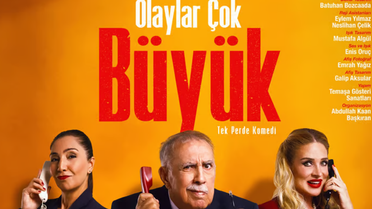 Yazan ve yöneten Burçhan Göze’nin imzasını taşıyan bu Temaşa Gösteri Sanatları yapımı, durmadan çalan telefonlar, üst üste yaşanan yanlış anlaşılmalar ve bir türlü tutmayan planlarla birlikte, metnin de vurguladığı gibi olayların gerçekten "çok büyük" bir hal aldığını gösteriyor. Yönetmen yardımcılığını Özge Günay Göze’nin, dekor tasarımını Batuhan Bozcaada’nın üstlendiği ve Abdullah Kaan Başkıran organizasyonuyla sahnelenecek olan bu yapım, seyirciye kahkaha ve gerilimi bir arada sunan büyük bir kaos şöleni vaat ediyor.