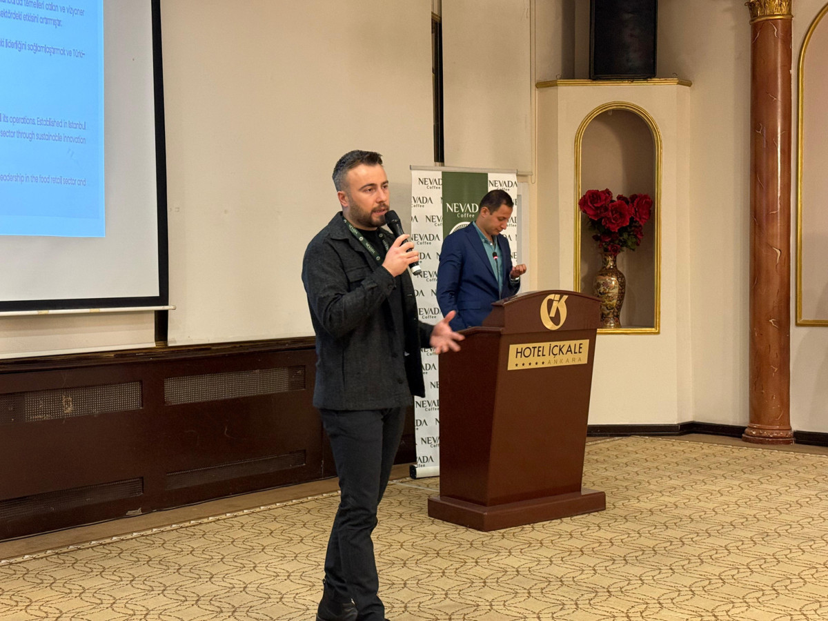 Toplantıda katılımcılara faaliyetlerini anlatan Nevco Holding Ortağı, Nevada Coffee Orta Anadolu Master Frenchise Genel Müdür Yardımcısı Kürşat Oğuz Çelebi kahve çekirdeklerinin özel olduğunu vurgulayarak, “Türkiye yıllık kahve tüketimi konusunda Avrupa’nın gerisinde. Türkiye’de şu anda kişi başı yıllık 1.8 ile 2.4 kilogram kahve tüketimi mevcut. Verilere bakıldığında kahve sektöründe üç dört kat büyüme öngörülüyor. İnsanlar kahveyi bir tüketim olarak görmemeli. Kahve bir yaşam, tarzı ve paydaş haline geldi. Kahve sektönünün büyümesinin nedeni budur. Nevada Coffe olarak 3 yıllık hikayemiz var. Kahve çekirdeklerimiz için Kolombiya’da 450 aile el işçiliğiyle çalışıyor. Kahvelerimizin lezzeti ve kalitesi de buradan geliyor. Yıl sonuna doğru 150. şubemizi açmayı düşünüyoruz. Ankara’da Batıkent Çakırlar’da ve Gordion AVM’de şubemiz açılacak” ifadesini kullandı.