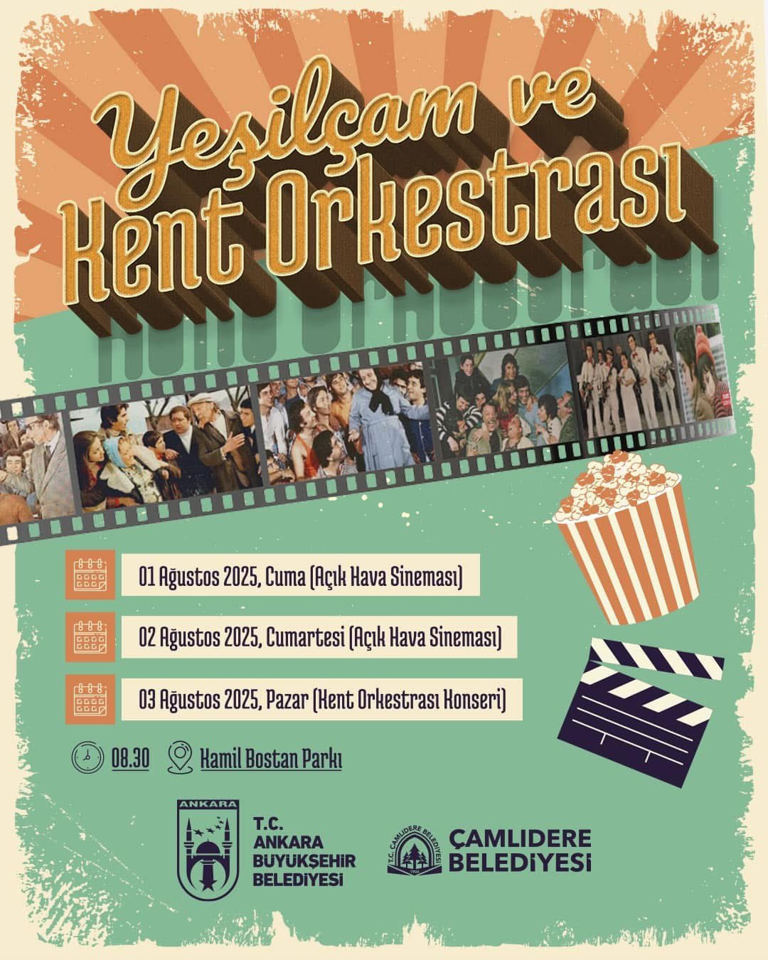 Çamlıdere Belediyesi resmi X hesabı üzerinden yapılan açıklamada, “Yeşilçam filmleri ve Kent Orkestrası ile geçmişe özlem, müziğe doyum bu etkinliklerde sizleri bekliyor. Hem Yeşilçam’ın efsane sahnelerini hatırlayacak hem de Kent Orkestramızın eşsiz ezgileriyle keyifli bir hafta sonu geçireceğiz. 1-2 Ağustos’ta Yeşilçam filmleriyle geçmişe yolculuk yapıyor, 3 Ağustos’ta Kent Orkestrası konseriyle müziğe doyuyoruz.” denildi.