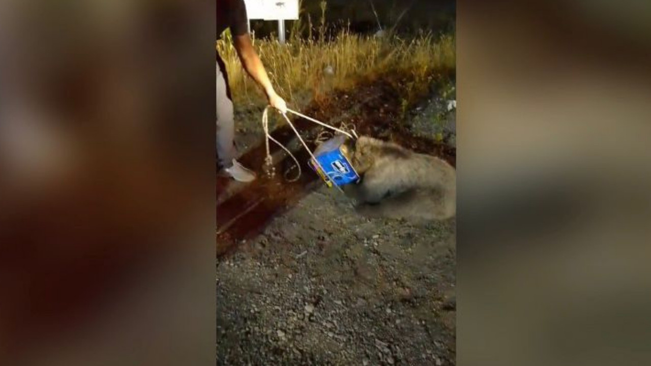 Çamlıdere’de kafasını tenekeye sıkıştıran ayı böyle kurtarıldı! Görüntüler sadece Yeni Ankara’da