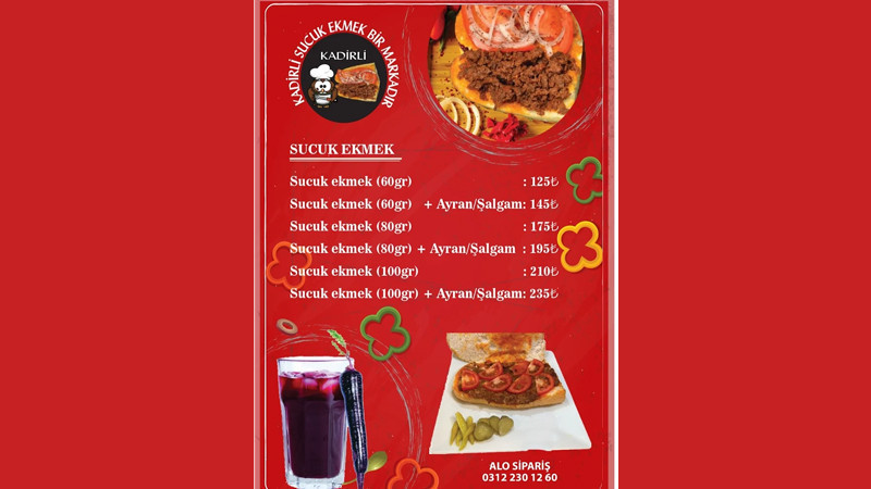 KADİRLİ SUCUK EKMEK'TE MENÜ FİYATLARI