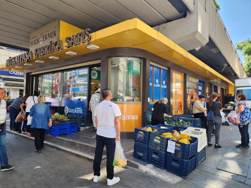 Halk Ekmek Mithatpaşa Fabrika Satış Şubesi, günün her saati ilgi görüyor. Merkezi bir konumda olması ve sebze meyvelerin zincir marketlere kıyasla uygun fiyattan satılması da şubede yoğunluğa yol açıyor. Her hafta pazar tezgahlarına gelen zammın yanı sıra haftada altı gün açık olması da Ankaralıları Başkent Marketlere yönlendiriyor.