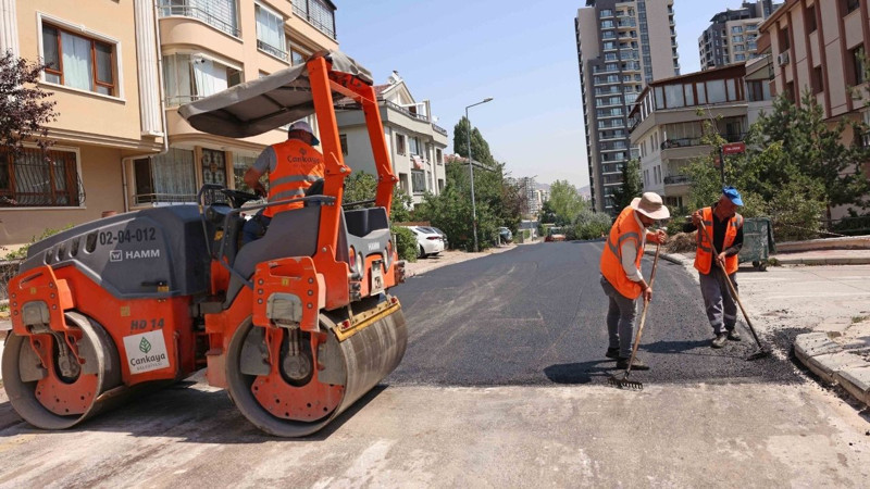 Çankaya Belediyesi, tam kaplama asfalt ve tretuvar çalışmalarını hız kesmeden sürdürüyor. Yedi mahallede yol yenileme işlemleri tamamlandı, hedef sezon sonuna kadar 100 bin ton asfalt serimi.