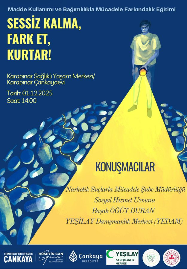 Çankaya Belediyesi, madde kullanımı ve bağımlılıkla mücadele konusunda farkındalığı artırmak amacıyla kapsamlı bir eğitim programı düzenliyor. “Sessiz Kalma, Fark Et, Kurtar!” sloganıyla duyurulan etkinlik, toplumda erken farkındalık oluşturmayı hedefliyor.