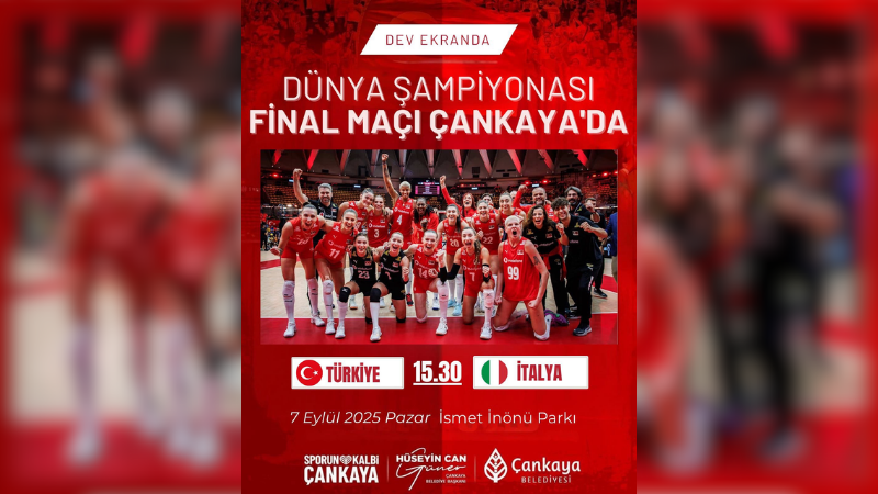 7 Eylül Pazar günü saat 15.30’da oynanacak Türkiye - İtalya final karşılaşması, Çankaya’daki İsmet İnönü Parkı’nda kurulacak dev ekrandan canlı izlenecek. Çankaya Belediyesi, tüm halkı bu coşku dolu anları birlikte paylaşmaya çağırdı.