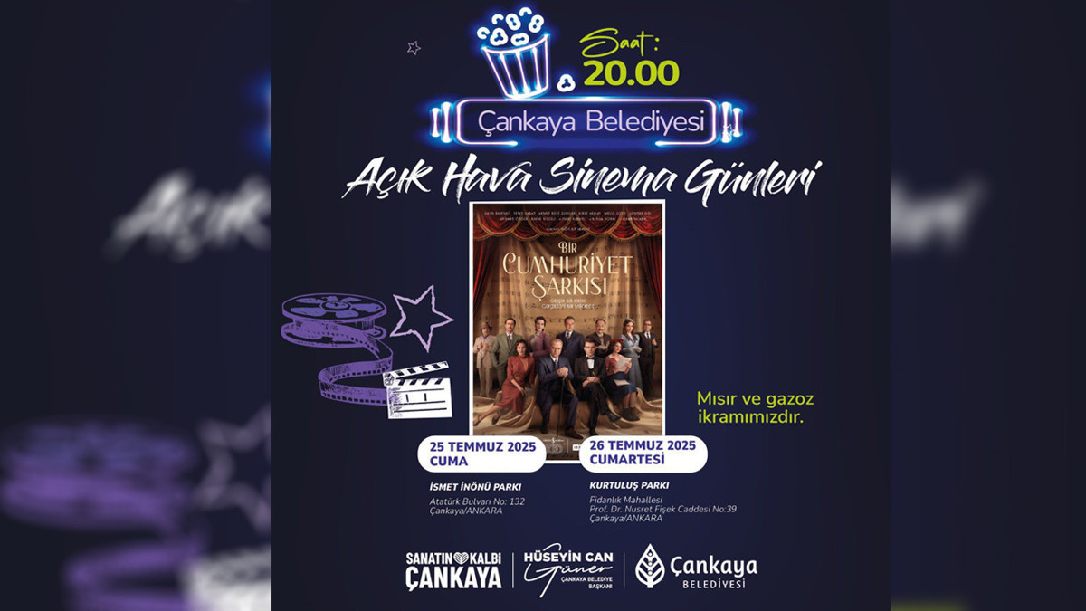 Çankaya Belediyesinin ‘Açık Hava Sinema Günleri’ kapsamında gerçekleştirdiği etkinlikte bugün Birlik mahallesinde konumlanan İsmet İnönü Parkı’nda ‘Bir Cumhuriyet Şarkısı’ filminin gösterimi yapıldı.