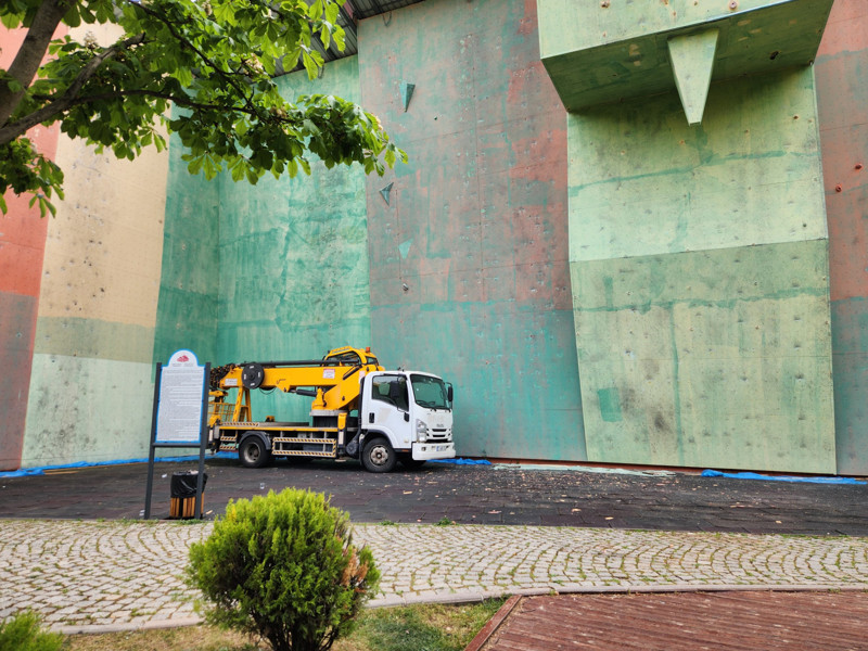 Türkiye Dağcılık Federasyonu öncülüğünde yapılan 'Dikmen Vadisi Yapay Tırmanış Duvarı'nda yenileme çalışmaları devam ediyor. Alana getirilen iş makineleri ile duvarda bakım ve onarım sağlanıyor.