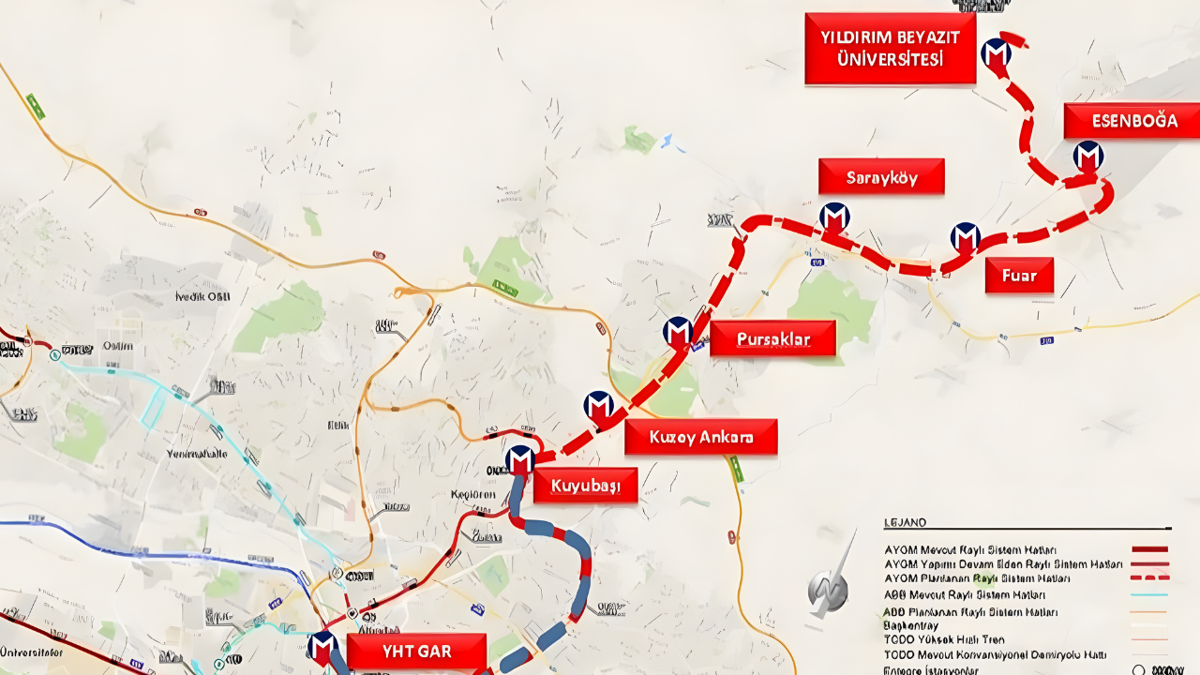 Ulaştırma ve Altyapı Bakanlığı, proje üzerinde hâlâ revizyon çalışmalarının yürütüldüğünü belirtiyor. Son bilgilendirmelere göre hattın Kızılay’dan başlayarak Etlik, Pursaklar ve Çubuk üzerinden Esenboğa’ya ulaşması, böylece havalimanına merkezden 25 dakika içinde erişim sağlanması planlanıyor. Bakanlık, revizyonun yıl sonunda tamamlanacağını ve ihalenin 2026’nın ilk aylarında yapılacağını ifade ediyor.