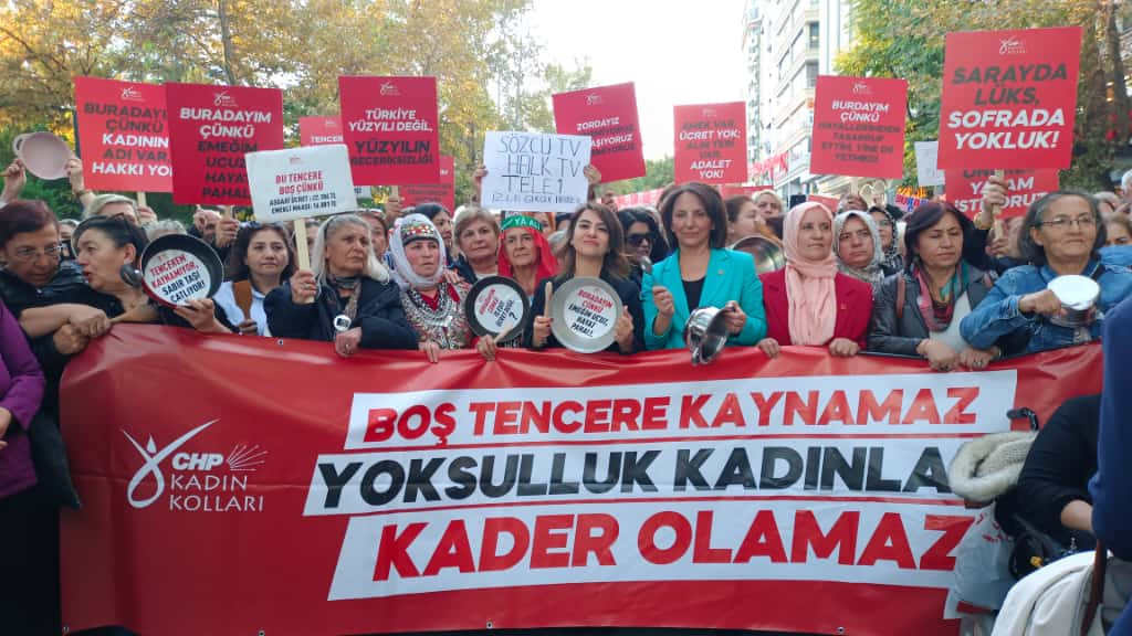 Ankara'da CHP İl Başkanlığı önünden ellerinde tencere ve tavalarla yürüyüşe başlayan kadınlar, Güvenpark üzerinden Sakarya Caddesi'ne ilerledi. Esnaf ve çevredekilerin de destek verdiği eylemde, artan hayat pahalılığı ve derinleşen yoksulluk protesto edildi.