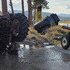 Çarpışmanın şiddetiyle traktörün ikiye bölündüğü anlar, çevredeki bir iş yerinin güvenlik kamerası tarafından kaydedildi.