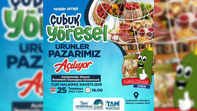 Çubuk Belediyesi, resmi X hesabından yaptığı paylaşımda, "Çubuk Et ve Yöresel Ürünler Pazarı Açılıyor! Yöremizin en doğal, en taze ve en lezzetli ürünlerini sizlerle buluşturuyoruz. Çubuk Et ve Yöresel Ürünler Pazarımızda; et ürünlerinden organik gıdalara, ev yapımı lezzetlerden doğal şarküteriye kadar aradığınız her şey sizi bekliyor! Açılış: 25.07.2025 Saat: 16.00 Cumhuriyet Mahallesi Süreyya Caddesi No:3 Açılışımızda yöresel ikramlarla damağınız şenlenecek, doğal olanı seven herkesi bekliyoruz!" ifadelerine yer verdi.