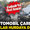 Çubuk'ta feci kaza! İki otomobil çarpıştı, araçlar hurdaya döndü