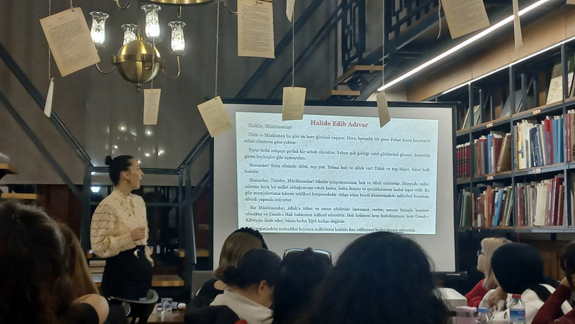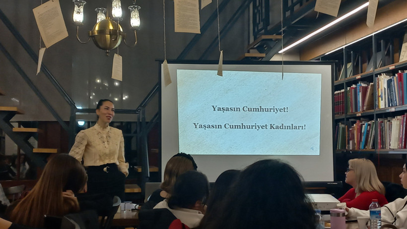 Ankara Adnan Ötüken İl Halk Kütüphanesi'nde, 29 Ekim öncesinde düzenlenen "Cumhuriyetin Kadın Kahramanları" etkinliğinde, Doç. Dr. Zümre Gizem Yılmaz Eriş, kadınların Kurtuluş Savaşı'ndaki fedakârlıklarını ve Cumhuriyetin kazanımlarını tarihi bağlamda ele aldı.
