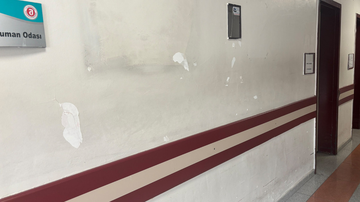 Binanın içine girdiğinizde bir sağlık kurumundan ziyade sağlığınızı kaybedebilecek bir yapıya girdiğiniz hissiyatıyla karşılaşıyorsunuz. Kimi kısımlarda sıvası dökülmüş duvarlar, kimi kısımlarda ise kırık dökük bir dolap karşınızda beliriveriyor.
