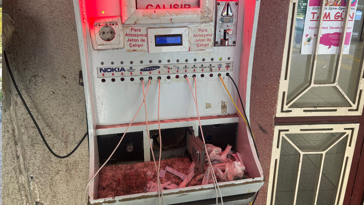 Poliklinik girişinde bulunan şarj makinesinin hali bile içler acısı. Bu teknolojik cihaz, adeta çöplüğe dönüşmüş durumda.