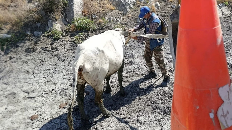 Çamura saplanan inek ve susuz kaplumbağa o belediye ekiplerinin dikkatiyle kurtarıldı