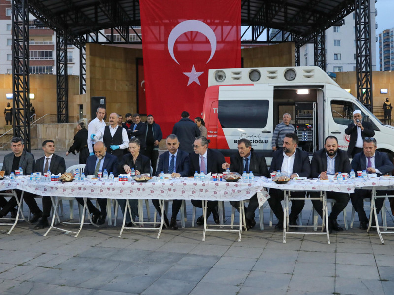 Türk Beyleri Kent Meydanı’nda kurulan açık hava iftar sofrasına 1000'den fazla kişi katıldı. Etkinliğe; Etimesgut Belediye Başkanı Erdal Beşikcioğlu, Başkan Yardımcıları Mutlu Kerimoğlu, İhsan Bahri Bellek ve Taylan Özgüven, Başkan Danışmanları Cem Berk Erdinç ve Beyza Şentürk, CHP İlçe Başkanı Selçuk Demir, Meclis Üyeleri, Birim Müdürleri, Etimkent Şirket Müdürü Muzaffer Çakır ile çok sayıda esnaf ve vatandaş katıldı.