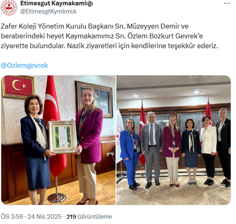 Etimesgut Kaymakamı Özlem Bozkurt Gevrek, kamu görevlerinin yanı sıra sosyal medyada da aktif bir profil çiziyor. (Twitter) X platformunda https://x.com/Ozlemgevrek kullanıcı adıyla yer alan Gevrek, görev süreci boyunca toplumu bilgilendirmeye ve farkındalık oluşturmaya yönelik paylaşımlar yapıyor.