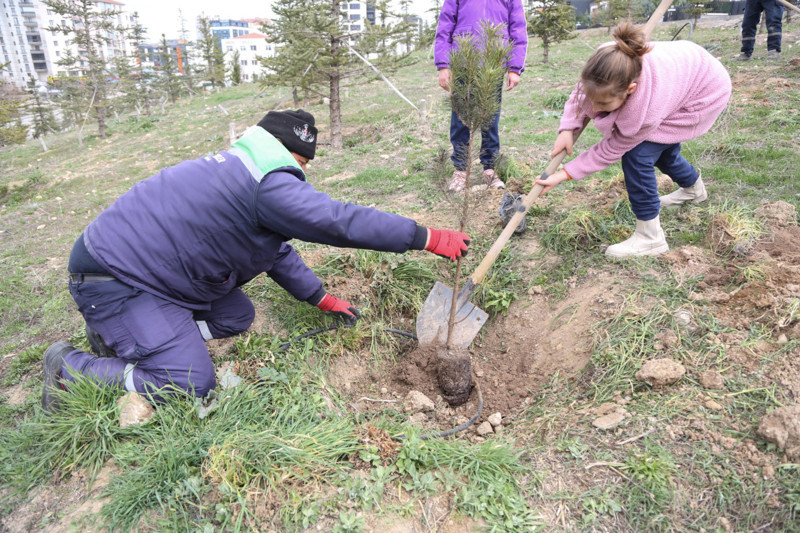 Öğrenciler, toprakla buluşturdukları fidanlarla doğaya katkı sağlamakla kalmadılar, aynı zamanda unutulmaz bir deneyim yaşadılar. Etimesgut Belediyesi Park Bahçeler Müdürlüğü görevlilerinin hazırladığı alana çok sayıda ağaç diken öğrenciler, belediye çalışanlarının desteğiyle bu anı hatırlatacak fotoğraflar çektiler.