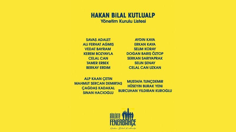 "Birlikte Fenerbahçe" sloganı ile 21 Eylül'deki kongre için kolları sıvayan Hakan Bilal Kutlualp, geçtiğimiz günlerde yönetim kurulu listesini duyurarak seçimlere tam anlamıyla hazır olduğunu belirtmişti.