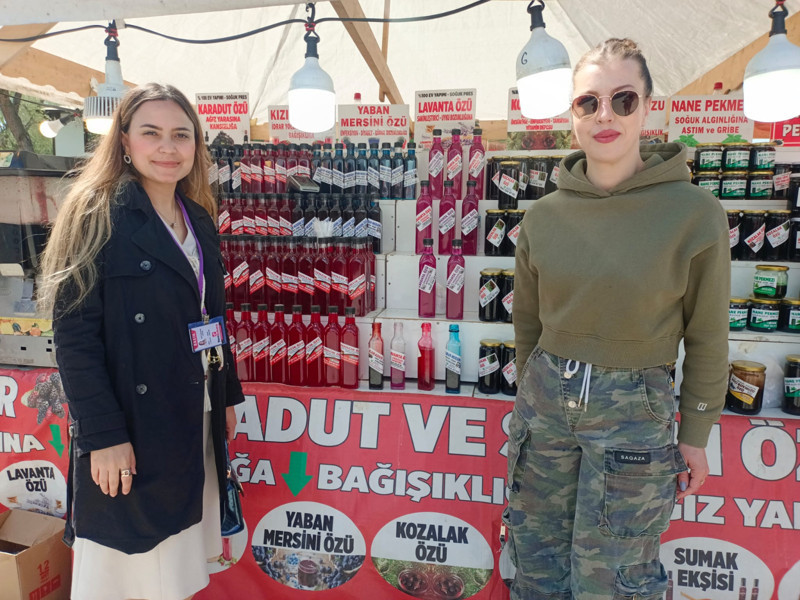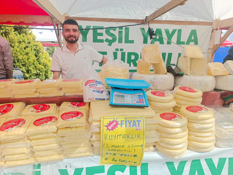 Zeytin ve zeytinyağı çeşitliliğiyle öne çıkan stantta, Bursa Gemlik ve Edremit’ten getirilen ürünler yer aldı. Sızma zeytinyağı 1 litresi 200 TL’den, ızgara zeytin 350 TL’den satılıyor. Halkalı, pembe, çizik, tuzlu-tuzsuz ve biberli zeytin ve pişmiş sütten yapılan peynir, kolot peyniri, kolay eriyen peynir ve has tereyağı gibi taze ve doğal ürün seçenekleriyle dikkat çekiyor.