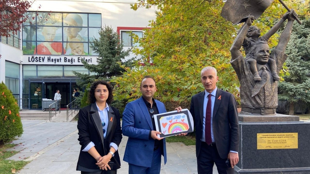 Gölbaşı Kaymakamı Erol Rüstemoğlu, Lösemili Çocuklar Haftası kapsamında LÖSEV Çocuklar Köyü'nü ziyaret etti. Ziyaretin en duygusal anı ise lösemiyi yenerek eğitimine devam eden bir öğrenciden Kaymakam Rüstemoğlu'na armağan edilen resim oldu.