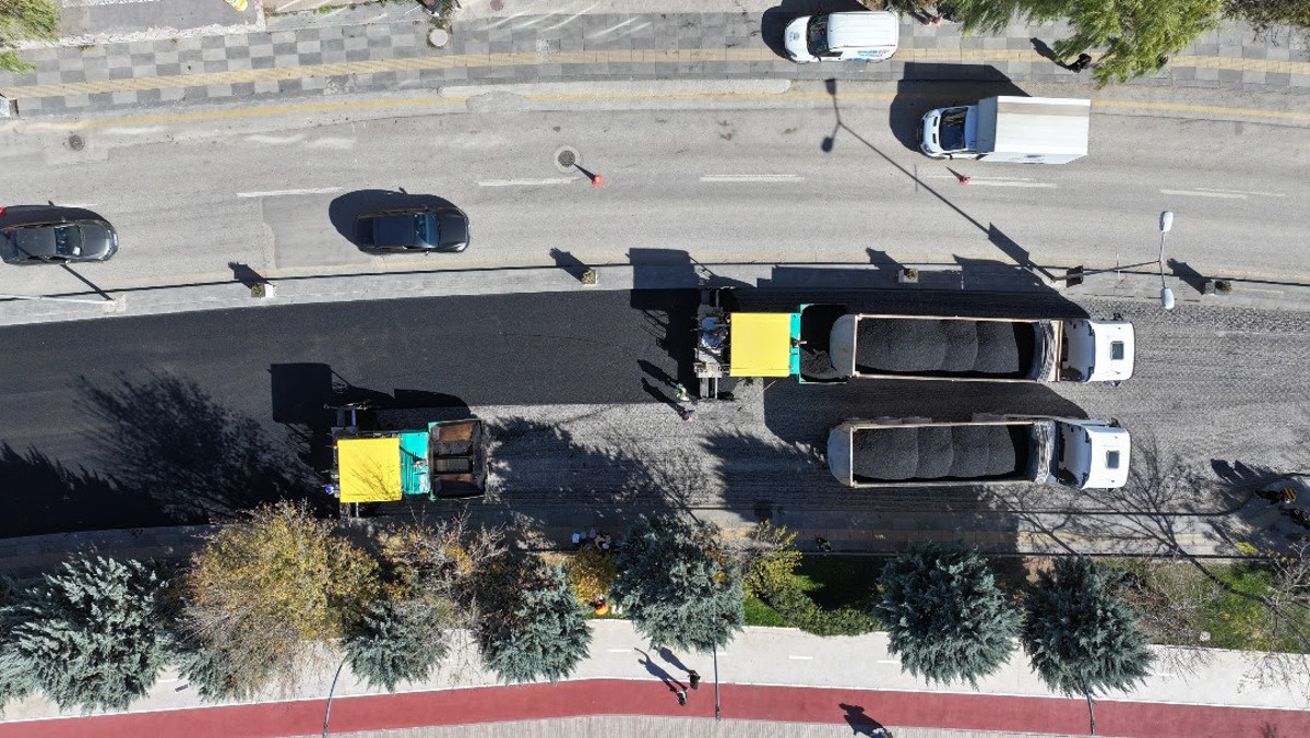 Gölbaşı Belediyesi ile Ankara Büyükşehir Belediyesi iş birliğiyle gerçekleştirilen çalışmada caddeye sıcak asfalt serimi yapıldı.
