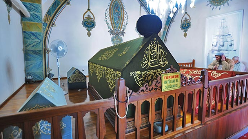 1429’da inşa edilen ve Hacı Bayram Camii’ne bitişik olan türbe, 9 sanduka içeriyor. Kare planlı yapı, Afyon mermeri, kesme kum taşı ve almaşık duvar tekniği gibi farklı malzemelerle yapılmış cepheleriyle dikkat çekiyor.