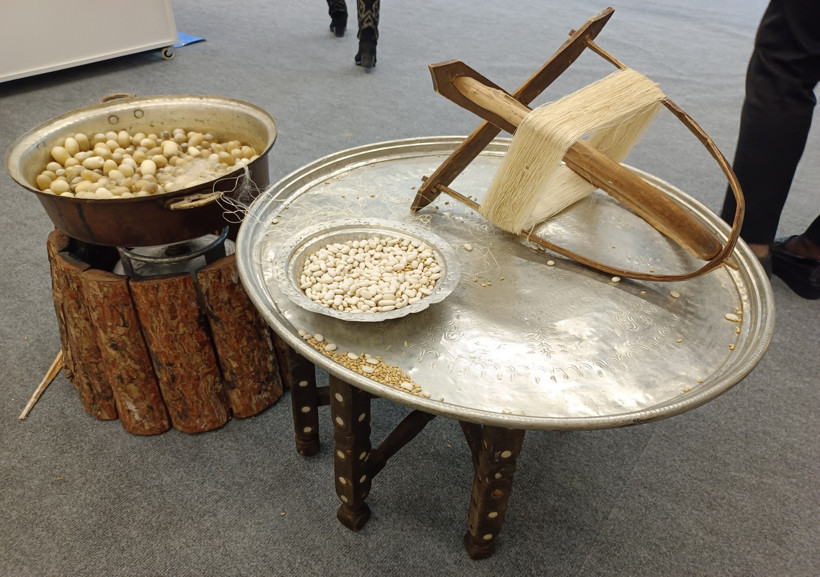 “Ozan Mahallemizde belediyemizin kurduğu Koza Üretim Tesisi’nde üreticilerimiz 40 gün boyunca ipek böceklerini besliyor. Kozalar kurutuluyor; eğer böcek zarar verirse kelebek oluşuyor ve iplik üretimi yapılamıyor. Kozalar uçuşa hazır hâle geldiğinde yaklaşık 100 tanesi birleştirilerek ipek iplik elde ediliyor. Bu iplikler, ceviz kabuğu, soğan kabuğu ve vişne suyu gibi doğal boyalarla renklendiriliyor. Hanımlar, gördükleri çiçeklerden ilham alarak motifleri iğneyle sanata dönüştürüyorlar.”