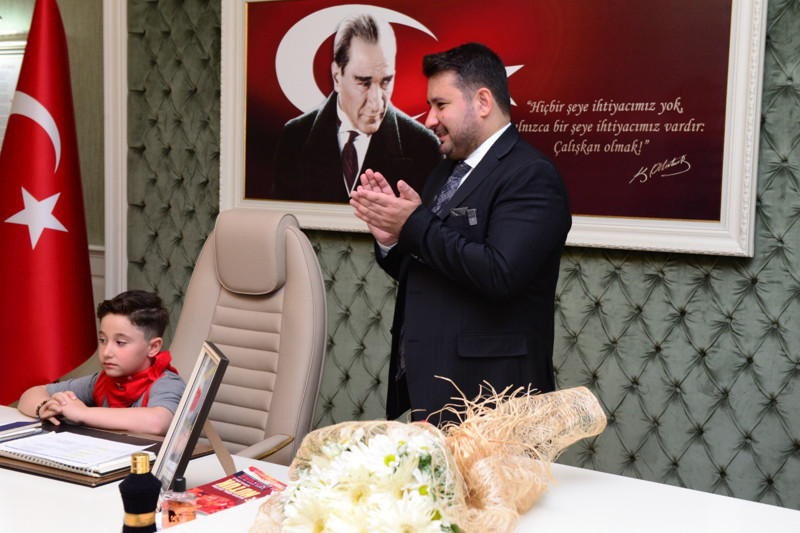 Belediye binasına öğretmenleri ve arkadaşlarıyla gelen Mehmet Ayaz Kurudayıoğlu, Özel Kalem personeli tarafından karşılandı. Ardından makam odasına geçen küçük Ayaz, Belediye Başkanı Selim Çırpanoğlu’ndan başkanlık koltuğunu devraldı. Çocuk Bayramı kapsamında bir günlüğüne başkan olan Kurudayıoğlu, konuşmasında temiz ve oyun alanı bol parklar hayal ettiğini dile getirerek, “Bu özel günü bizlere armağan eden Mustafa Kemal Atatürk’e teşekkür ediyorum,” dedi.